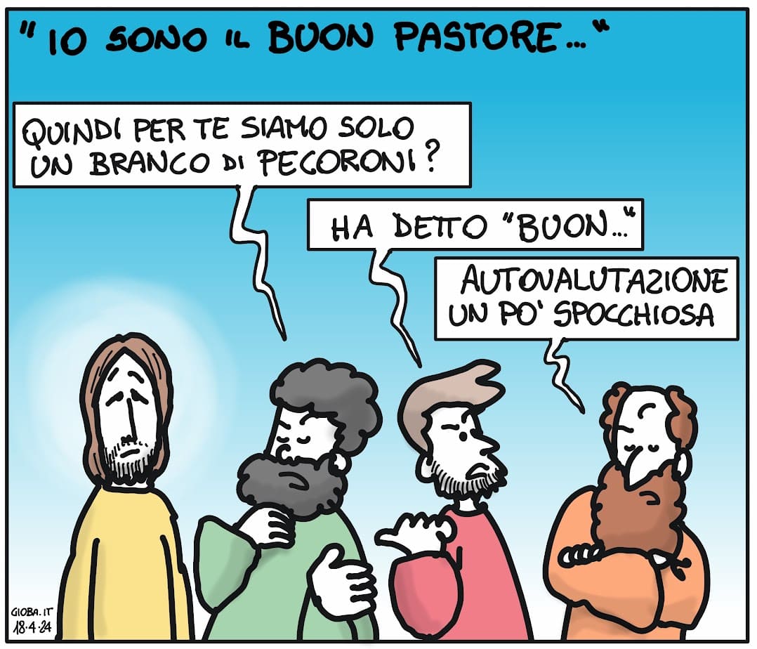Ecco chi รจ Gesรน: รจ Dio che per amore scende in mezzo a noi, si mescola con la vita umana, con il gregge degli uomini, e fa di tutto perchรฉ rimanga unito. Gesรน lo ha fatto con il gregge dei discepoli e ha invitato i discepoli a rimanere uniti e a creare un mondo unito. Gesรน ha preso lโodore di vita dei suoi discepoli stando con loro, con i loro limiti, paure, fragilitร . Gesรน รจ stato un pastore buono, perchรฉ ha vissuto fino in fondo questa vocazione ricevuta dal Padre: condurre, guidare, proteggere, riunire il gregge umano, disposto a dare la vita per gli uomini che sente suoi.