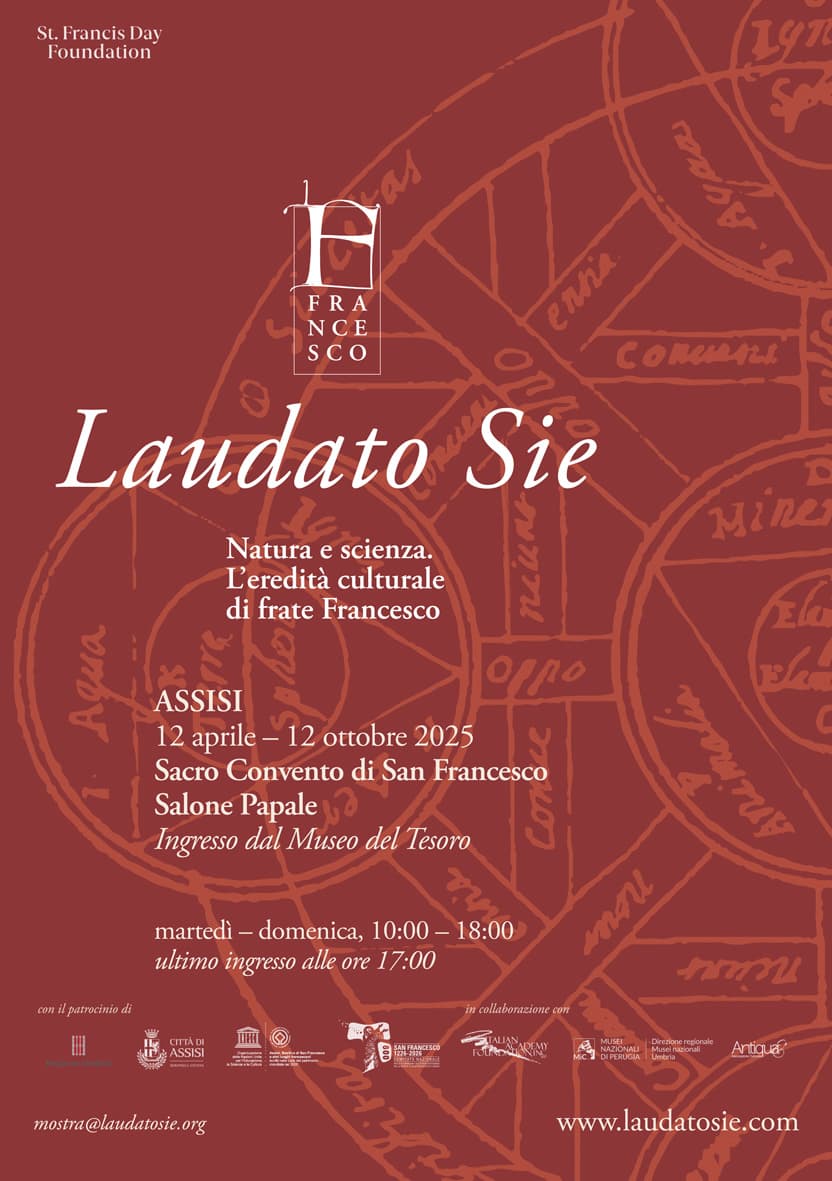 ASSISI (PG), 7 APR – Ad ottocento anni dalla composizione del Cantico di Frate Sole o Cantico delle Creature di San Francesco di Assisi – nel Salone Papale del Sacro Convento di Assisi, riaperto per l’occasione al pubblico – viene esposta da venerdì 11 aprile a domenica 12 ottobre 2025 la mostra Laudato Sie: Natura e Scienza. L’eredità culturale di frate Francesco, organizzata dalla St. Francis Day Foudation con il Sacro Convento di San Francesco in Assisi, l’Italian Academy Foundation e l’Associazione AntiquaE e con il patrocinio della Regione Umbria, della Città di Assisi e del Comitato Nazionale per le celebrazioni dell’VIII centenario della morte di san Francesco d’Assisi.
