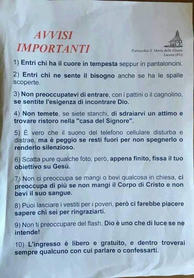 Questo รจ un decalogo che รจ stato proposto nella parrocchia di Santa Maria delle Grazie nel comune di Lucera (FG).