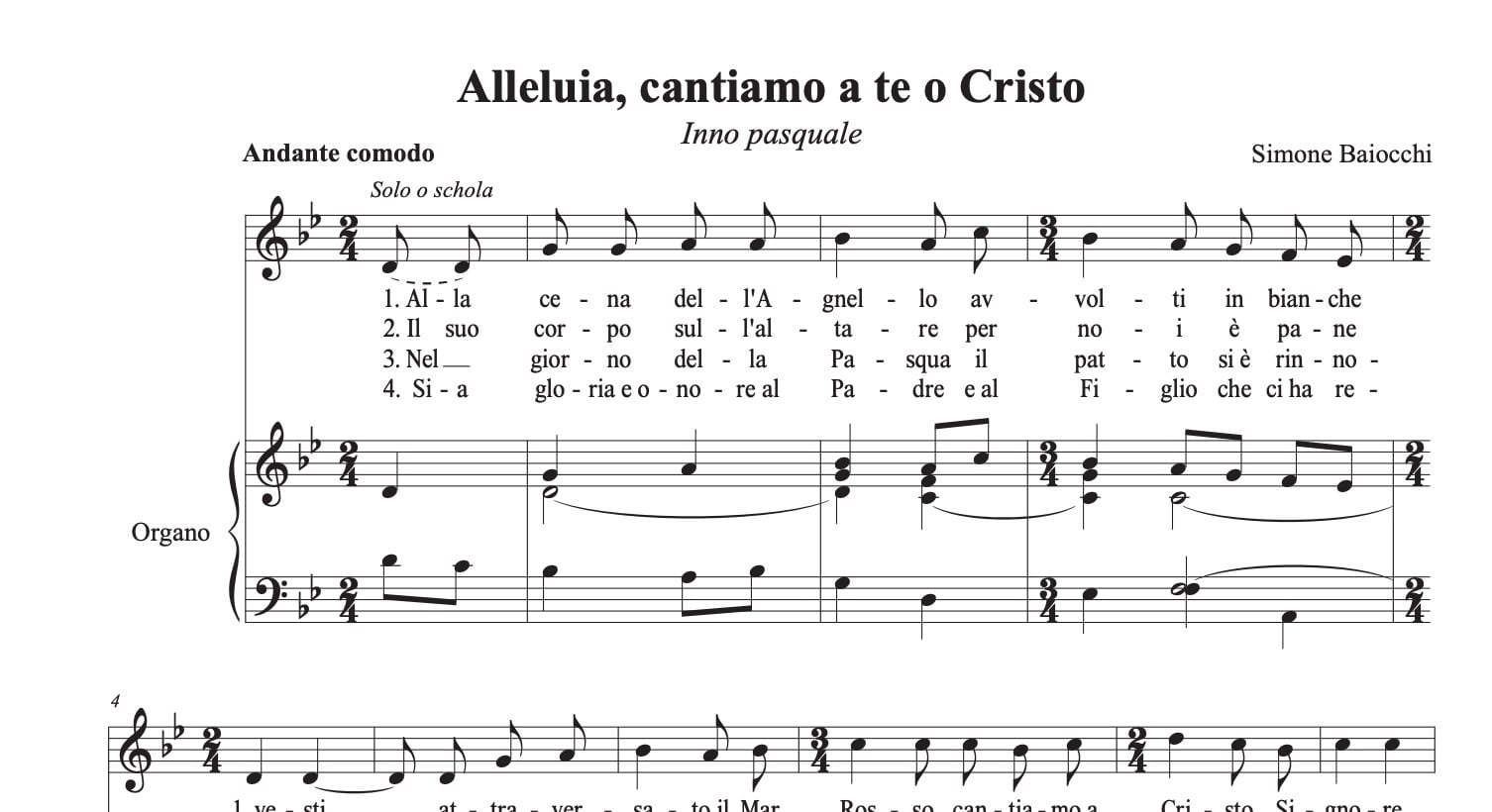 Per il Tempo di Pasqua, si propone l’Inno “Alleluia, cantiamo a te o Cristo“, del M° Simone Baiocchi.