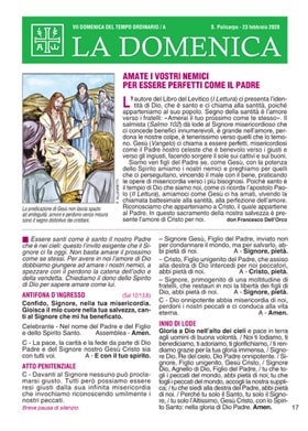 Essere santi come รจ santo il nostro Padre che รจ nei cieli: questo lโinvito esigente che il Signore ci fa oggi. Non basta amare il prossimo come se stessi. Per avere in noi lโamore di Dio dobbiamo giungere ad amare i nostri nemici, a spezzare con il perdono la catena dellโodio e della vendetta. Chiediamo il dono dello Spirito di Dio per sapere amare come lui.