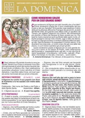Il Corpo e il Sangue di Gesรน ci rendono partecipi della sua stessa vita. Ogni Eucaristia ci fa pregustare il Convito eterno. Ci fa diventare una cosa sola, un unico corpo che giร vive della vita eterna, in cui il vivere รจ perderci gli uni per gli altri.