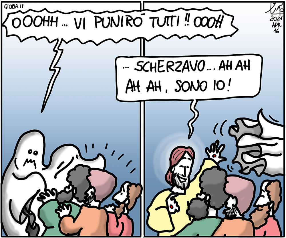 Gesรน risorto non รจ un fantasma! E Gesรน stesso ci tiene a sottolinearlo piรน volte. Il Maestro รจ morto veramente, ma ora si mostra vivo in una modalitร che i discepoli non riescono subito a capire. I racconti delle apparizioni di Gesรน risorto in tutti i Vangeli convergono nel ribadire questa presenza viva che non รจ un semplice fenomeno di visione fine a sรฉ stesso, ma una modalitร di presenza che non vale solo per allora ma anche per i tempi successivi, anche i nostri.