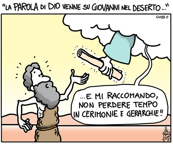 Lโevangelista Luca apre il racconto della vita adulta di Gesรน con la presentazione di Giovanni il Battista, che in fondo diventa modello di discepolo. La cornice storica che lโevangelista mette allโinizio di tutto ci vuol dire che la storia di Gesรน non รจ fuori dal tempo, ma dentro un tempo ben preciso, dentro la storia. Ma lโaltro messaggio che mi sembra davvero di poter cogliere รจ che tutta questa grandezza dei personaggi storici di allora, dallโimperatore di Roma fino alle somme autoritร civili e religiose del tempo, appare piรน come una montagna invalicabile o ad una valle incolmabile che non facilita ma allunga il percorso di Dio verso lโumanitร . Per questa ragione Dio sceglie un uomo nel deserto in una localitร periferica dellโimpero romano per arrivare e comunicare il proprio amore. โLa parola di Dio venne su Giovanniโฆ nel desertoโ.