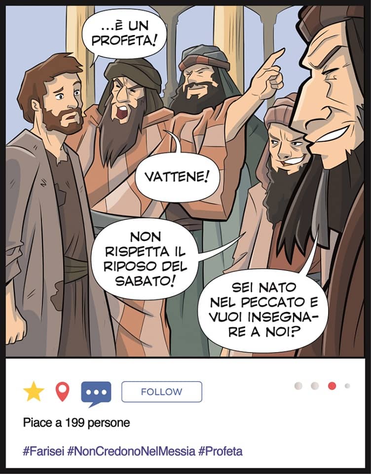 Sei nato tutto nei peccati. Secondo la tradizione rabbinica il male fisico era conseguenza diretta del peccato, espiabile col passare di tre o quattro generazioni (cf Es 34,7). Gesรน รจ categorico nel rifiutare il legame tra la colpa e la condizione fisica dell’uomo.