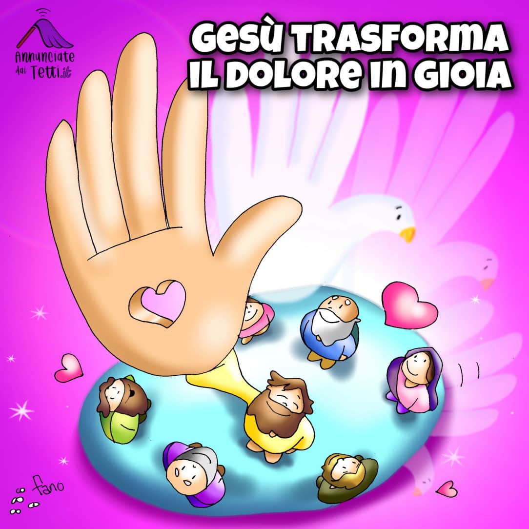 Gesรน, per far credere a Tommaso, gli fa mettere la mano nelle sue ferite, quasi a dire: se vuoi credere devi toccare con me la sofferenza. Ma il Signore non vuole che soffriamo, infatti come quelle piaghe sono state trasformate dalla risurrezione, anche la sofferenza รจ trasformata. Le prove che ci vengono mandate da affrontare, non sono per il dolore, ma per la gioia: se non conosci ciรฒ che fa male, non potrai capire cosโรจ il bene, se non conosci la sofferenza non potrai mai trasformare la vita in gioia.