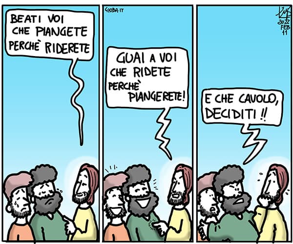 โBeati voi poveriโฆโ sono le parole con cui inizia a rivolgersi ai suoi discepoli, rincarando poi con i successivi โbeati voi che avete fame e voi che piangeteโฆโ.