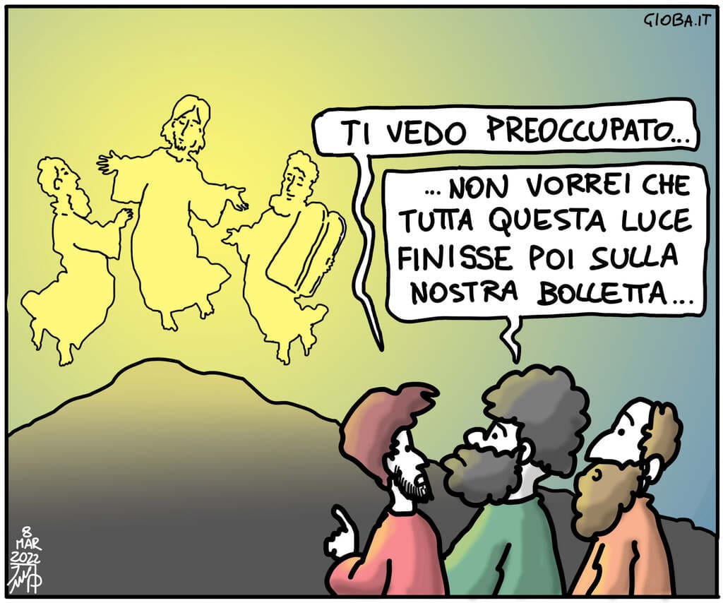 Gesรน porta i suoi amici piรน stretti, piccola avanguardia del gruppo degli apostoli e di tutta la Chiesa, su un monte e per un attimo a questi tre, Pietro Giacomo e Giovanni, tutto appare chiaro e bello. Nel bel mezzo delle incognite della missione del loro Maestro e della loro stessa vita, รจ donato loro un momento di luce e di vera e propria โvisione chiaraโ delle cose. I tre discepoli sono condotti da Gesรน sul monte di cui non sappiamo il nome, che sembra essere piรน un luogo simbolico che un posto reale. ร il monte della preghiera che apre gli occhi e il cuore, aiutando a capire Gesรน, la sua missione, il perchรฉ vale la pena seguirlo e che anche nelle prove piรน dure alla fine sarร lui il punto finale che vince.