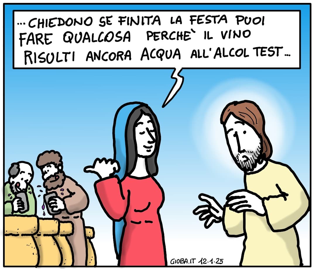 Il racconto del segno miracoloso delle Nozze di Cana ci insegna che anche la situazione piรน inaridita e in pericolo puรฒ essere sanata da Gesรน. Ci racconta che anche il vino dellโamore che lega le persone tra loro e con Dio non รจ finito del tutto, almeno non dalla parte di Dio.