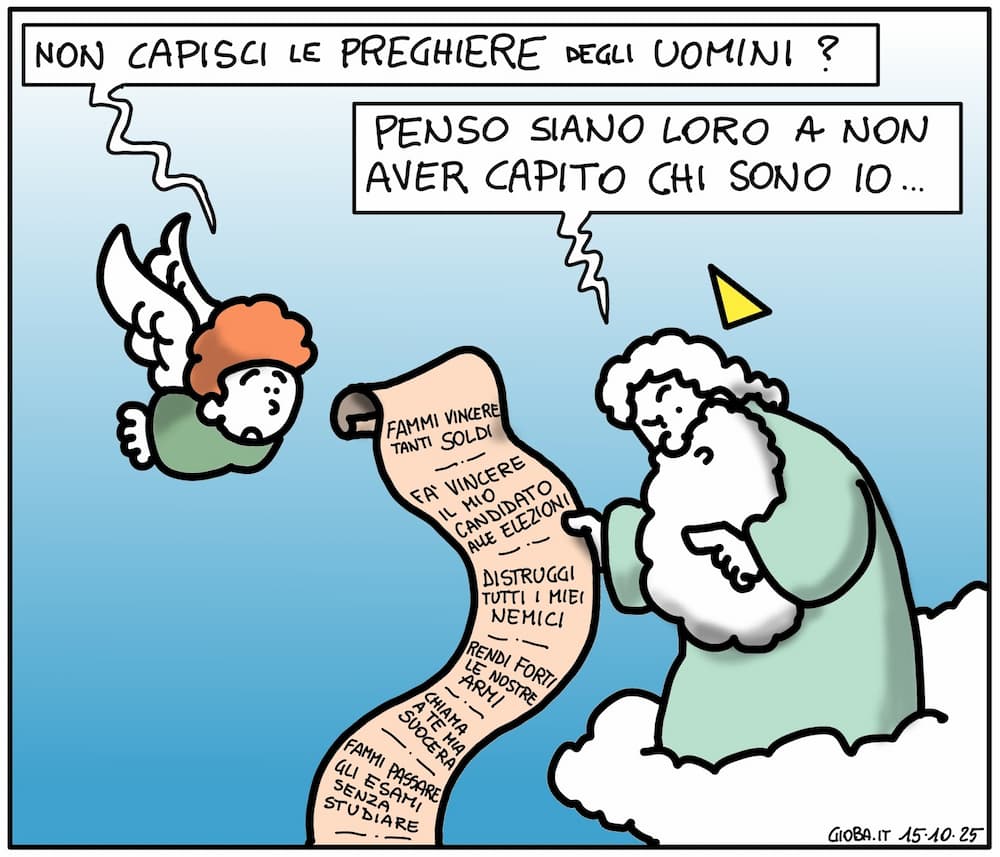 Il racconto รจ volutamente paradossale, ma serve a farci riflettere: crediamo davvero che Dio ci ascolti? Cโ€™รจ speranza nella nostra preghiera? Abbiamo fiducia che le cose possano cambiare, o le nostre preghiere sono solo parole senza fuoco, spente in partenza?