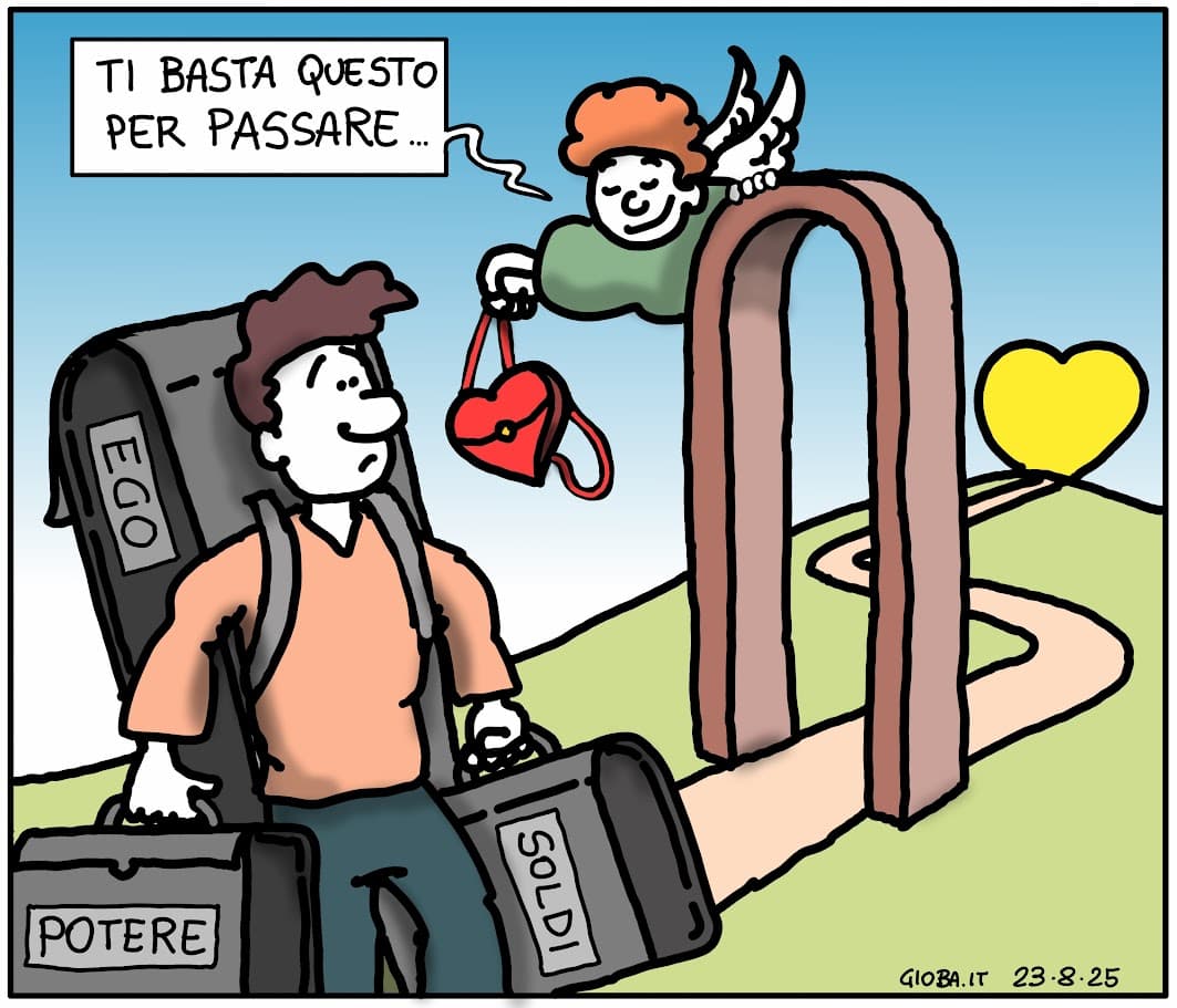 Al tale che lo incontra per strada e gli pone una domanda troppo generica sulla salvezza, Gesรน risponde invitando lui, i suoi discepoli e noi a non mancare mai le porte della vita che hanno misure strette, a volte piccolissime: porte che ci costringono a piegarci, e soprattutto a liberarci di tutto ciรฒ che ci rende goffi e ingombranti nel passare. Non cโรจ solo la porta finale del Paradiso: ci sono infinite porte dentro il cammino della vita che ci permettono di accedere allโincontro con Dio giร da ora, in questa vita.