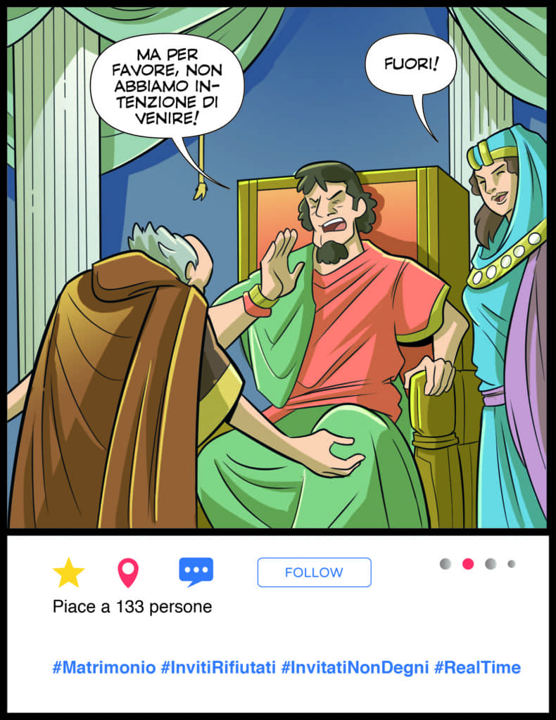 Invitati non degni. La parabola ha un messaggio chiaro: l’antica alleanza tra Dio e il popolo d’Israele si รจ rotta definitivamente. Chi รจ stato scelto per primo ha rifiutato l’opportunitร . Qualcuno con superficialitร e menefreghismo, altri con odio e violenza. La punizione del re รจ ciรฒ che รจ capitato davvero nella storia, con Gerusalemme messa a “ferro e fuoco” dai Romani, proprio negli anni della stesura definitiva del vangelo di Matteo.