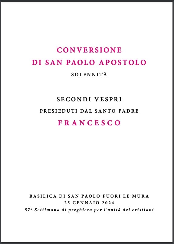 Libretto PDF Celebrazione della Conversione di San Paolo Apostolo – Celebrazione dei Secondi Vespri [25 gennaio 2024]