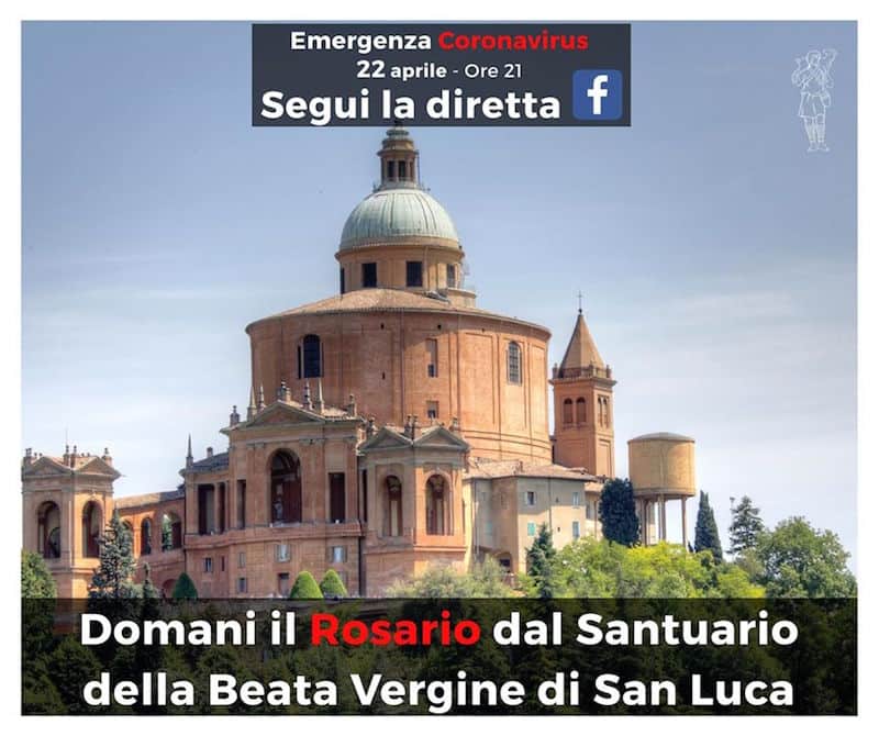 Il nuovo appuntamento per la preghiera comunitaria, che sarร trasmesso da Tv2000 e InBluradio oltre che sulla pagina Facebook della Conferenza Episcopale Italiana, si terrร nel Santuario della Beata Vergine di San Luca di Bologna.