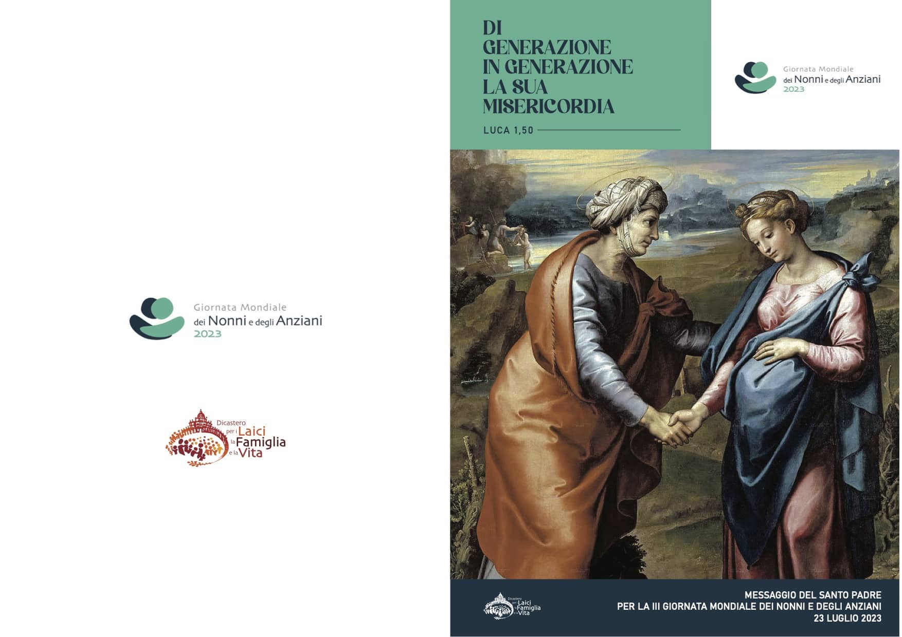 ยซDi generazione in generazione la sua misericordiaยป ( Lc 1,50): รจ questo il tema della III Giornata Mondiale dei Nonni e degli Anziani. ร un tema che ci riporta a un incontro benedetto: quello tra la giovane Maria e la sua anziana parente Elisabetta (cfr Lc 1,39-56). Questa, ricolma di Spirito Santo, rivolge alla Madre di Dio delle parole che, a distanza di millenni, ritmano la nostra preghiera quotidiana: ยซBenedetta tu fra le donne e benedetto il frutto del tuo gremboยป (v. 42). E lo Spirito Santo, giร disceso su Maria, le suggerisce di rispondere con il Magnificat , nel quale proclama che la misericordia del Signore si estende di generazione in generazione. Lo Spirito Santo benedice e accompagna ogni fecondo incontro tra generazioni diverse, tra nonni e nipoti, tra giovani e anziani. Dio, infatti, desidera che, come ha fatto Maria con Elisabetta, i giovani rallegrino i cuori degli anziani, e che attingano sapienza dai loro vissuti. Ma, anzitutto, il Signore desidera che non lasciamo soli gli anziani, che non li releghiamo ai margini della vita, come purtroppo oggi troppo spesso accade.