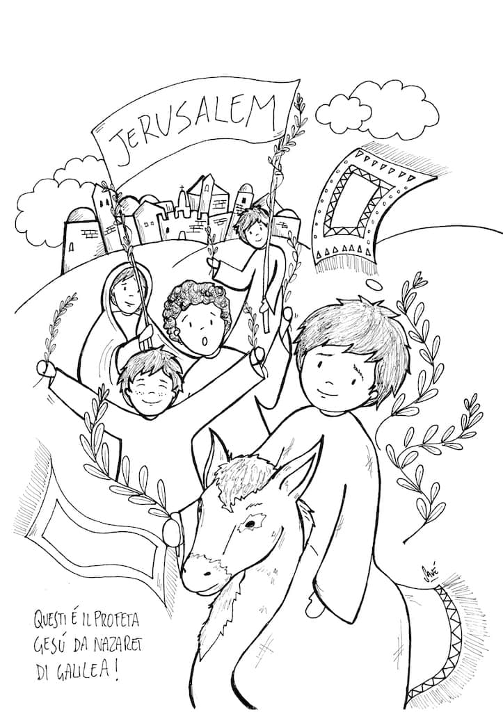 Ma perchรฉ Gesรน vuole entrare in Gerusalemme cavalcando unโasinae il suo puledrino?Nella Bibbia si racconta del profeta Zaccaria, vissuto tanti e tanti anni prima di Gesรน, che parla del Messia e invita tutti ma in particolare il popolo di Gerusalemme a rallegrarsi perchรฉ il messia viene come re giusto, vittorioso e umile cavalcando un asina e un puledro dโasina. Questo profeta Zaccaria fa un ritratto del Messia che descrive bene Gesรน.