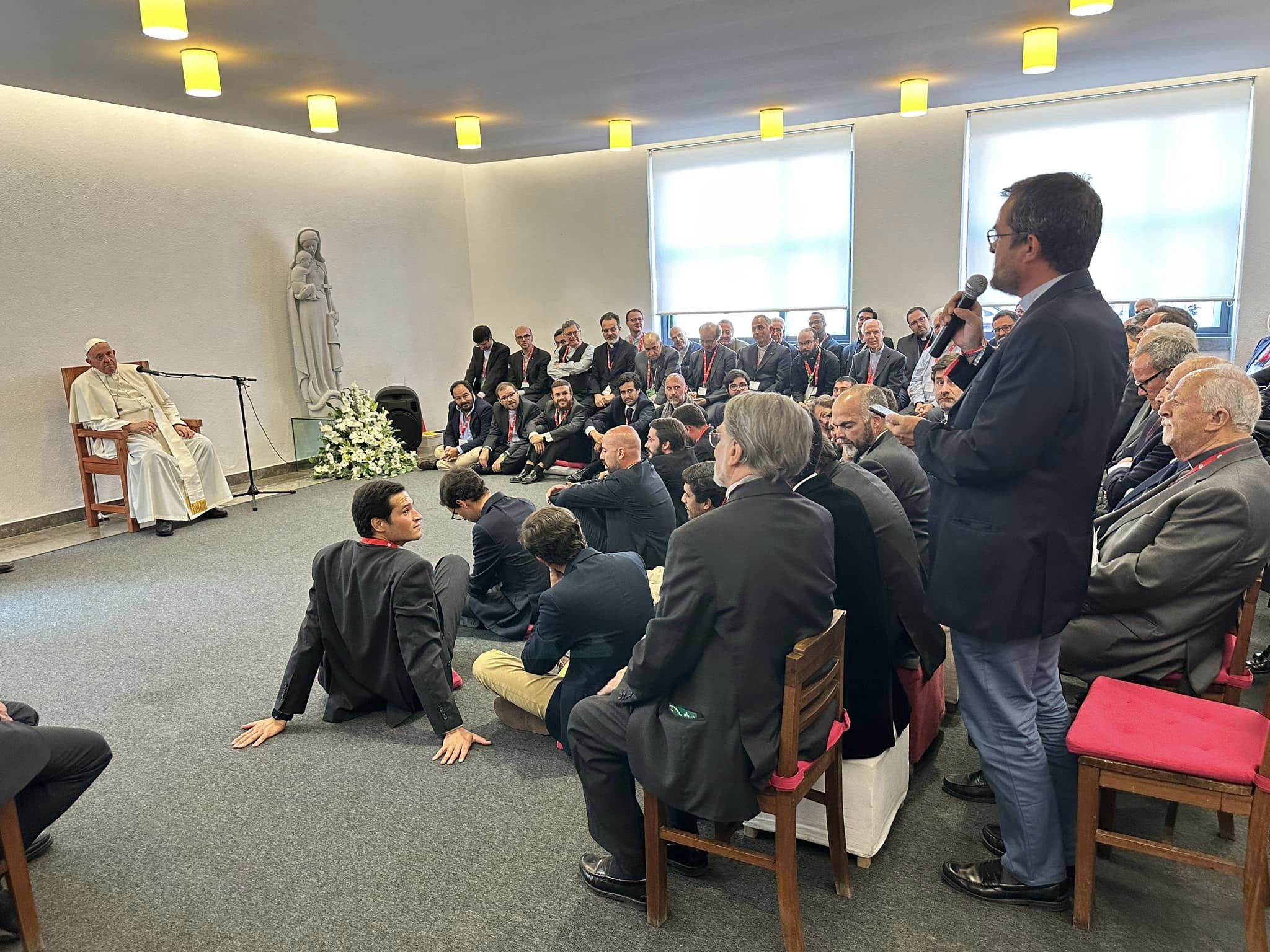 Salve, Santo Padre, mi chiamo Vasco, studio Filosofia, sono il piรน giovane della Provincia, e per questo mi hanno chiesto di parlare per primo: gli ultimi saranno i primiโฆ Vorrei farle una domanda. Davanti alle sfide della nostra generazione, guardando alla nostra societร sessualizzata, consumistaโฆ, secondo la sua esperienza di gesuita, crede che la nostra formazione sia strutturata per affrontare queste sfide? E come possiamo curare sempre al meglio la nostra formazione di gesuiti a livello affettivo, sessuale, corporeo?