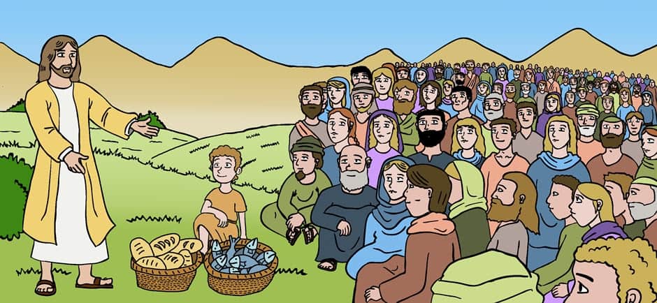 Oggi ci meravigliamo della tenerezza e dell’immaginazione di Dio. Il cuore di Gesù vede la fame di quelle persone. Ce ne sono molte, molte migliaia. Non importa: Gesù è Dio! Davanti la sua tenerezza, nessun bisogno passa inosservato; nella sua immaginazione, nessuna somma è impossibile. Con pochi pani e un paio di pesciolini, il Signore ha reso felici molte persone (5.000 uomini più le loro rispettive famiglie).