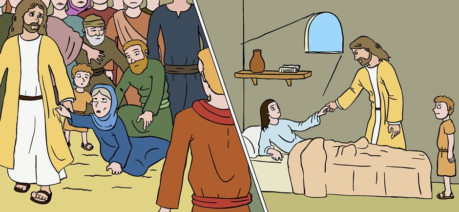 Oggi è Giairo che implora il Signore. Gesù è appena sbarcato e subito molte persone intorno a Lui lo circondano e lo stringono. Mentre andava a casa di Giairo, una donna che era malata da 12 anni —piena di fiducia— tocca il mantello di Gesù e guarisce … Nel frattempo la figlia di Giairo ‘muore …