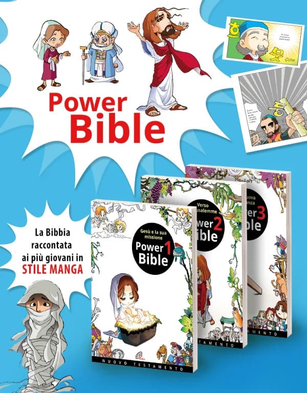 Lโ€™editore Paoline inizia la pubblicazione di una serie di 10 volumi (โ€œPower Bibleโ€) che, attraverso lo stile Manga, raccontano la Bibbia: un modo originale e accattivante per incuriosire, far conoscere e amare ai piรน giovani il messaggio di fede che il Testo Sacro porta con sรฉ.