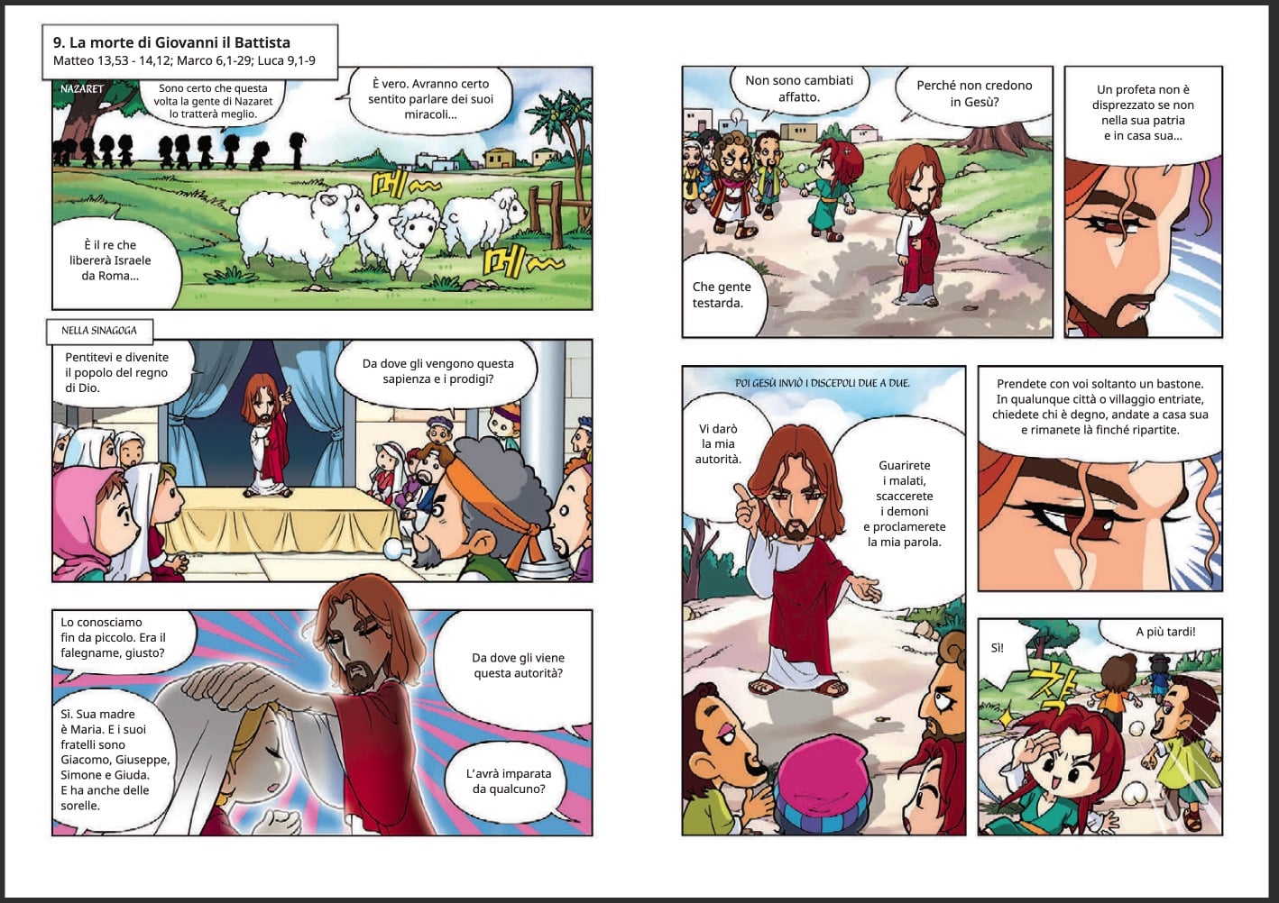 A questi primi tre titoli seguiranno sei volumi sul Primo Testamento e un decimo volume dedicato alle prime comunitร  cristiane, fino alle pagine dellโ€™Apocalisse. La sfida รจ quella di far sรฌ che, attraverso lo stile Manga, i giovani lettori possano lasciarsi avvicinare dalla Bibbia e da Dio in unโ€™etร  โ€“ in particolare, dopo la Prima Comunione – che spesso li vede, al contrario, allontanarsi dalla fede.