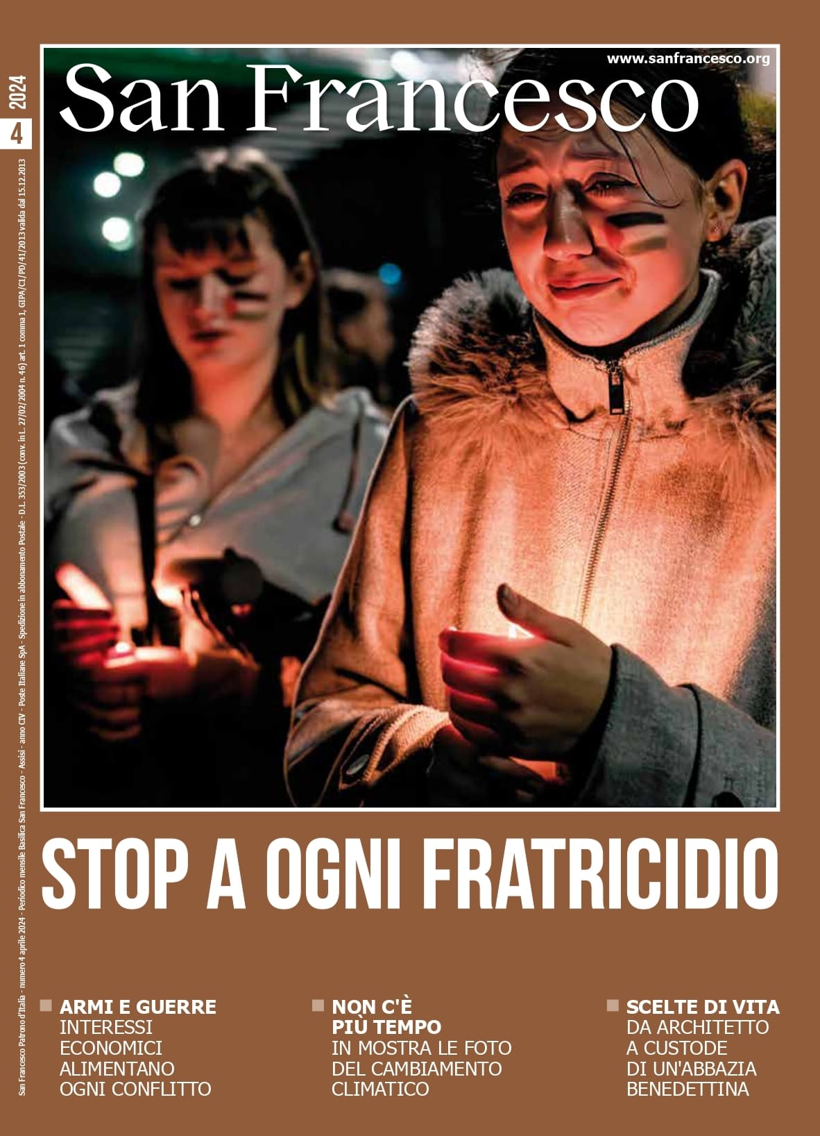 ยซPreoccupa che gli appelli alla pace – ha dichiarato fra Riccardo Giacon, OFMConv, direttore della rivista San Francesco Patrono dโItalia – vengano sistematicamente ignorati, lasciando la parola al suono stridente delle armi. Lo schema folle della guerra non ferma chi ricerca in modo ostinato una via diversa da quella della pace. Perchรฉ i conflitti che insanguinano il mondo sono un โfratricidioโยป.