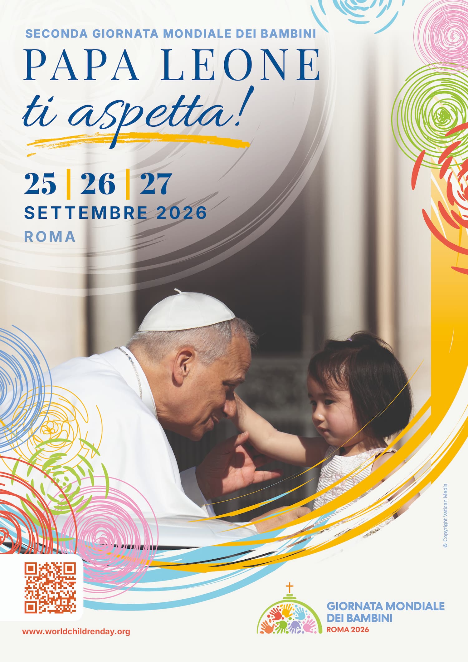 Dopo il successo della prima edizione del 2024, che riunì circa 100.000 bambini da 101 Paesi, la Chiesa rinnova così l’impegno ad ascoltare e valorizzare la voce dei più giovani. Il logo dell’evento, con sette impronte colorate, simboleggia l’universalità dei bambini dei sette continenti e la Cupola di San Pietro come segno di accoglienza e protezione universale.