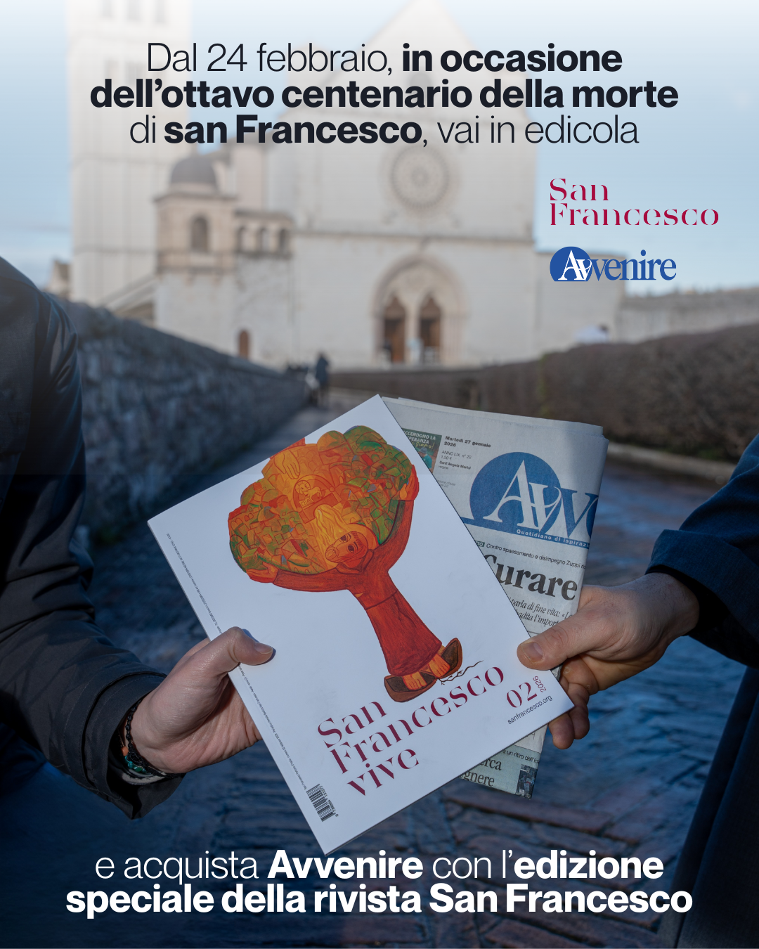Grazie a una preziosa collaborazione con il quotidiano Avvenire, il numero speciale “San Francesco vive” sarà acquistabile in edicola in abbinamento al giornale a partire dal 24 febbraio. Inoltre, gli abbonati alla rivista Luoghi dell’Infinito riceveranno gratuitamente questa speciale pubblicazione. È un modo concreto per estendere le possibilità di condivisione della figura e del messaggio di san Francesco, un dono di pace e fraternità che ancora oggi illumina il nostro cammino.