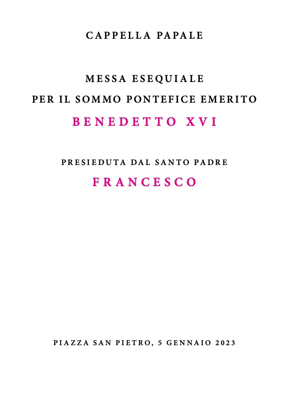 Scarica il Libretto della Celebrazione: Messa Esequiale per il Sommo Pontefice Emerito Benedetto XVI [5 gennaio 2023]