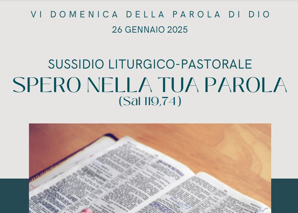 Il Dicastero per l’Evangelizzazione presenta il sussidio liturgico-pastorale per la VI Domenica della Parola di Dio (26 gennaio 2025), il cui motto, “Spero nella tua Parola” (Salmo 119,74), รจ il fulcro di riflessioni teologiche su speranza e fede in Dio, attraverso la Sacra Scrittura.