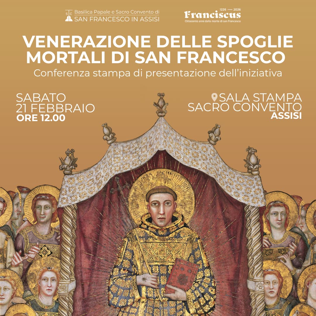 Sabato 21 febbraio alle 12 conferenza stampa presso la Sala Stampa del Sacro Convento, alle 16 celebrazione dei Vespri preceduta dalla traslazione delle reliquie